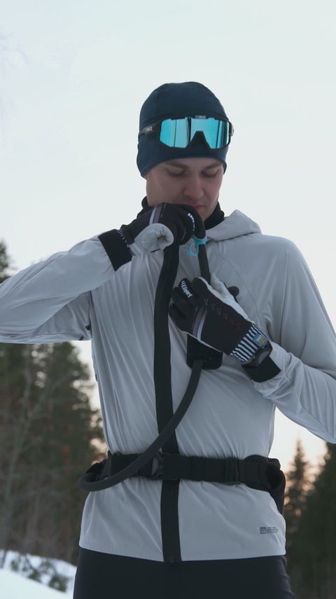 Race Belt 4 is Silva's most flexible hydration belt for cross-country skiing and roller skiing. The hose belt is designed for ski races or long sessions with easy-access pockets, 4 liter pack volume, 1.5 liter hydration bladder and insulated hose that does not freeze. The Embrace System carrying system makes the belt flexible with even weight distribution during long activities and the soft mesh fabric on the back creates optimal ventilation.
